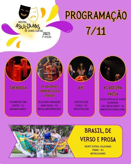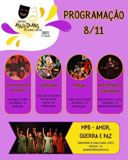 Em 2025, serão apresentadas 8 cenas que concorrerão a 13 prêmios de teatro e espetáculos convidados de teatro adulto, dança e música levando muita arte e cultura ao subúrbio carioca.